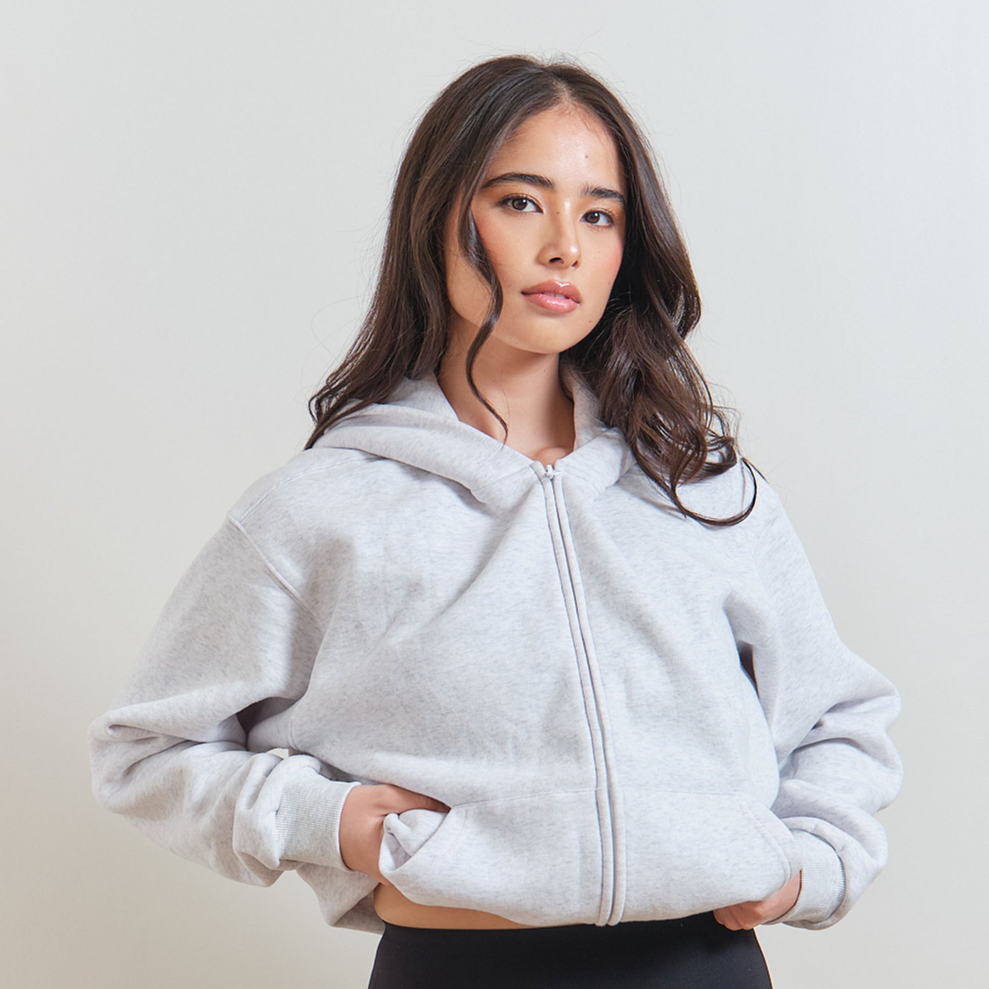 Designed with a boyfriend-inspired cut, this fleece hoodie offers a cozy, oversized feel. The zip-up front adds versatility, making it an easy throw-on layer.
