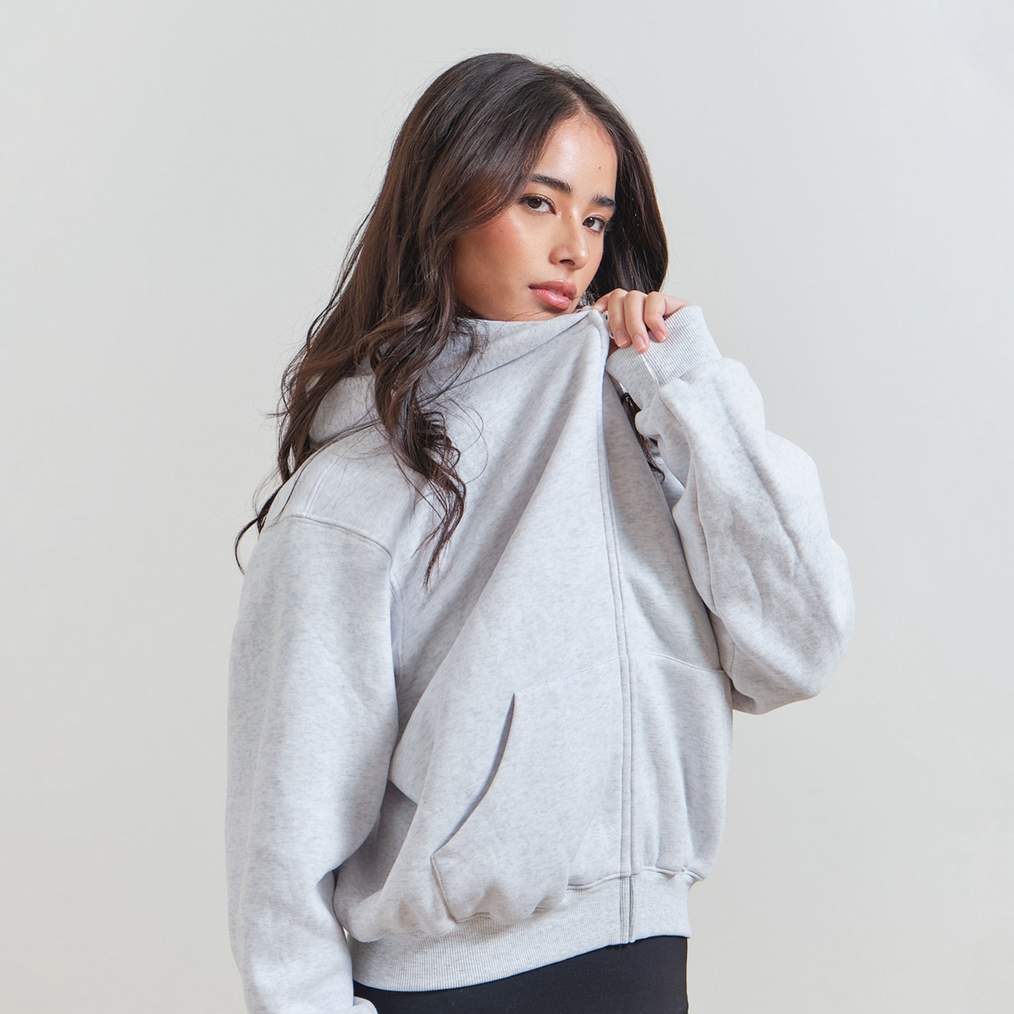 With its oversized fit and warm fleece lining, this zip-up hoodie delivers maximum comfort and laid-back style. A go-to piece for casual days.